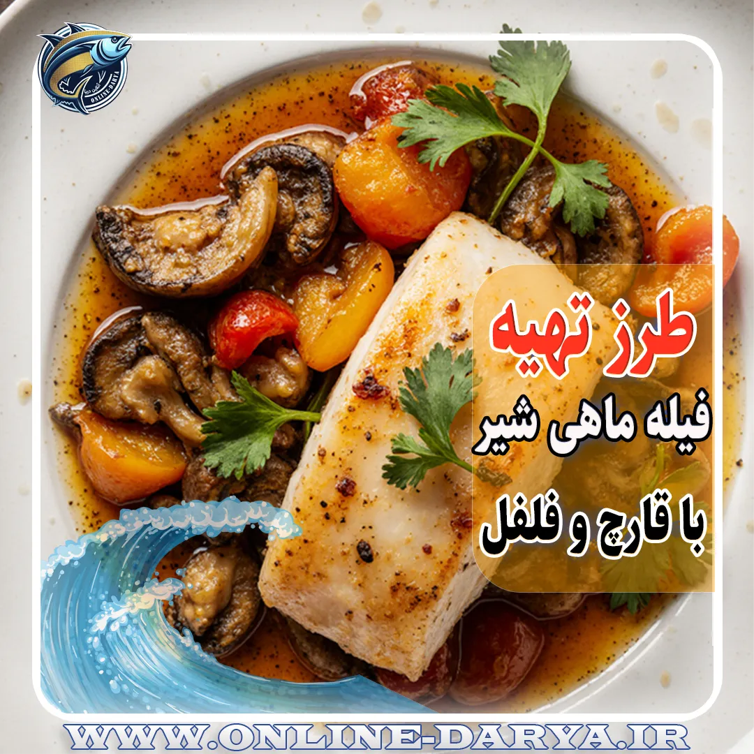 طرز تهیه فیله ماهی شیر با قارچ و فلفل دلمه